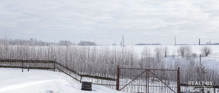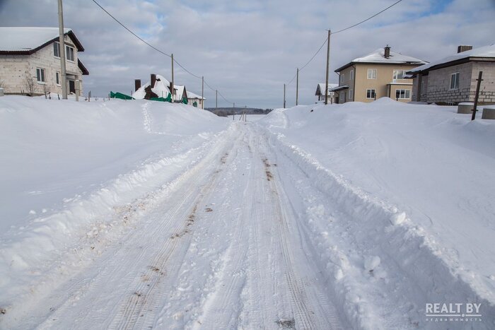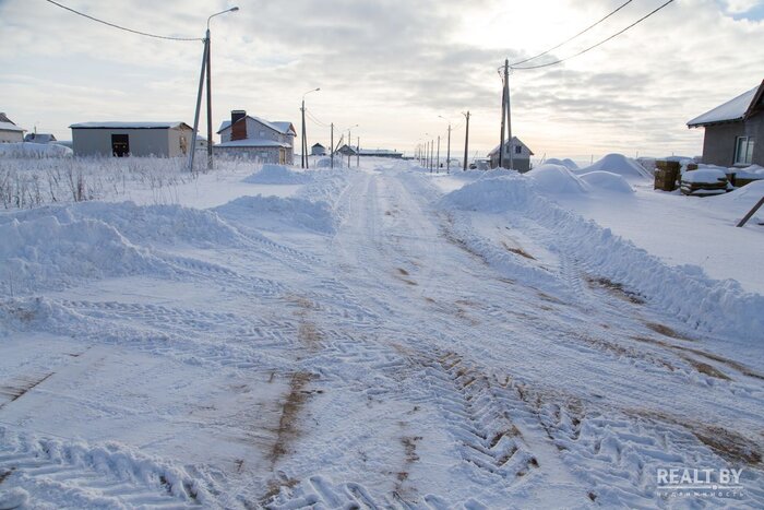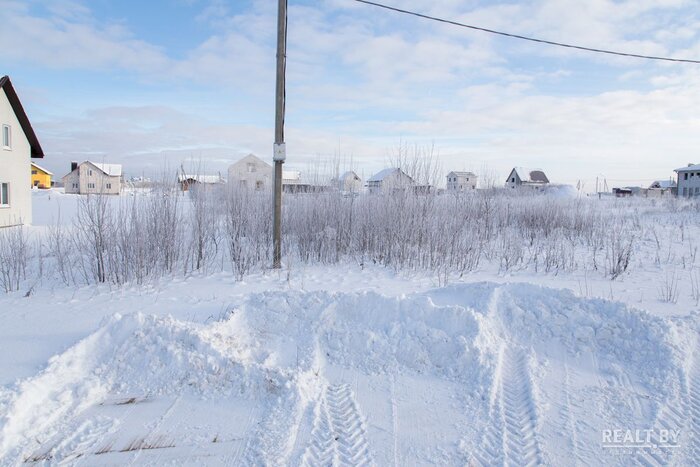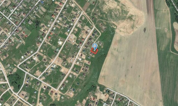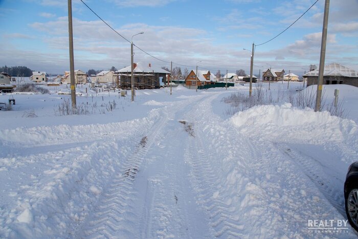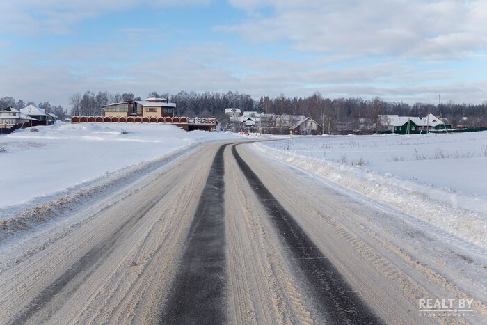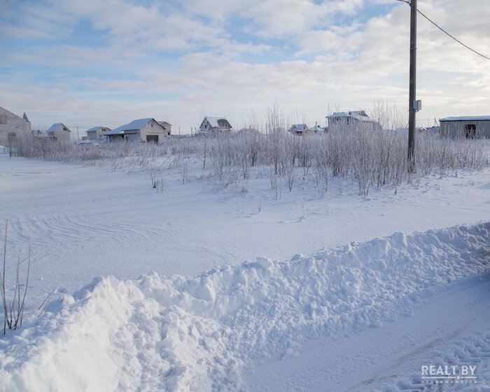 Участок № 263 выделен в квартале новой коттеджной застройки, соседи активно строятся, подъезд — плохая накатанная дорога. Добраться до территории участка на автомобиле у нас не получилось: дороги занесло снегом и проезд был сильно затруднен. Территория участка довольно ровная, слегка заросшая кустарником, за земельным наделом простирается поле. Коммуникаций поблизости нет.