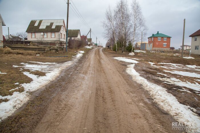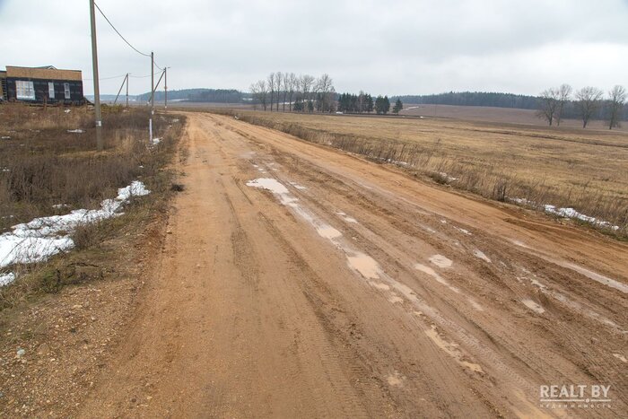 Участок № 14 располагается на окраине населенного пункта в квартале новой коттеджной застройки. Подъездные пути — обычная накатанная дорога. Минимальный дождь и подъезд будет серьезно затруднен. Большинство соседей строятся, однако в квартале имеются и жилые дома. Участок крайний, возле поля, во второй линии за строящимися домами. Территория участка сложная для освоения — в наплывах и буграх. Из коммуникаций имеются вода и электричество.