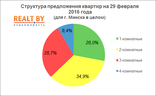 Структура предложения по типам квартир выглядит на 29 февраля следующим образом: