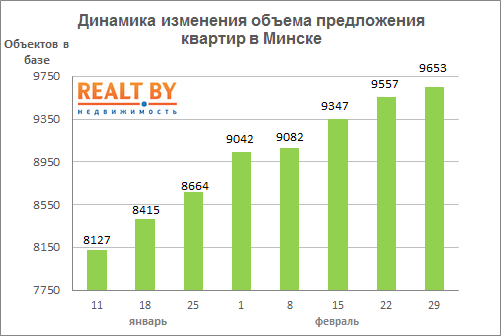 В 2015 году рост предложения остановился лишь в начале апреля. Если ситуация повторится, мы в самое ближайшее время увидим цифру в 10 000 объявлений о продаже квартир в Минске.