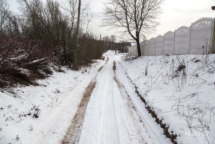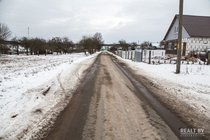 К населенному пункту из Минска ведет асфальтированная трасса, лишь последние 100 метров до участка придется проехать по накатанной дороге. Располагается вакантный земельный надел в квартале жилой застройки. Территория участка высокая, довольно ровная, но заросшая небольшими деревьями и кустарником. Из коммуникаций заявлены газ и электричество.