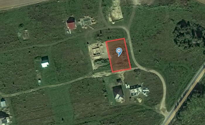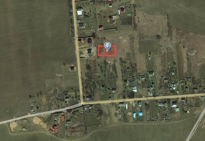Участок, выставленный на аукцион, размещается во второй линии от проезжей части аккурат за строящимися домами. За участком простирается поле, слева и справа соседей нет. По населенному пункту проходит асфальтированная дорога, однако подъезда к самой территории участка нет. Из коммуникаций в населенном пункте имеются водопровод и электричество.