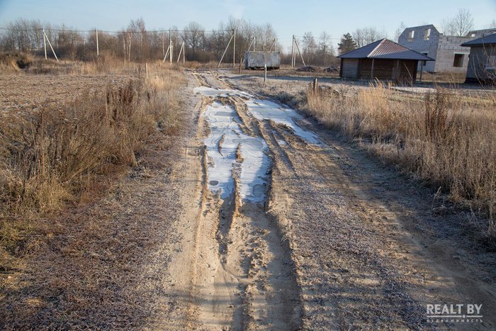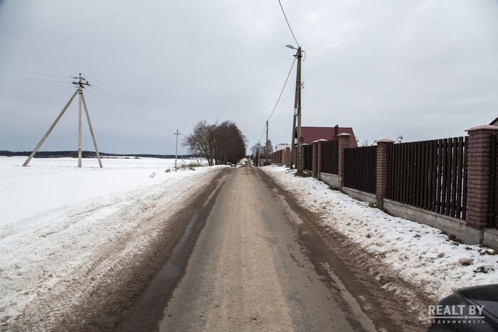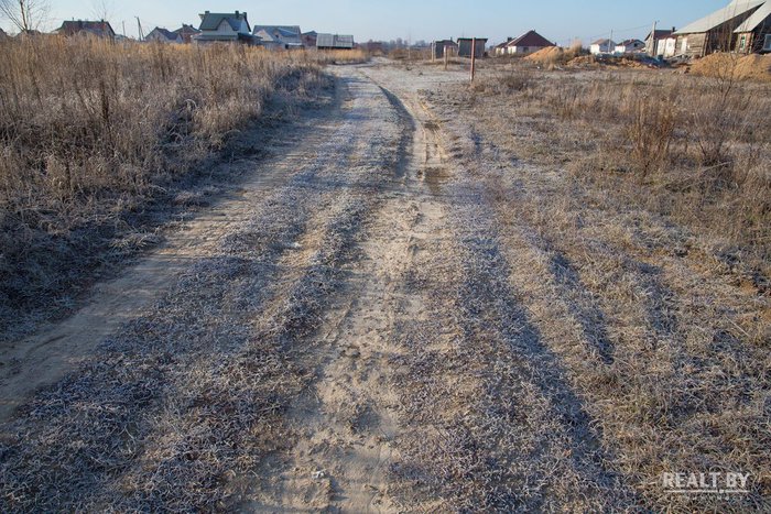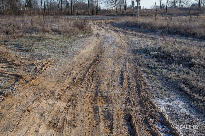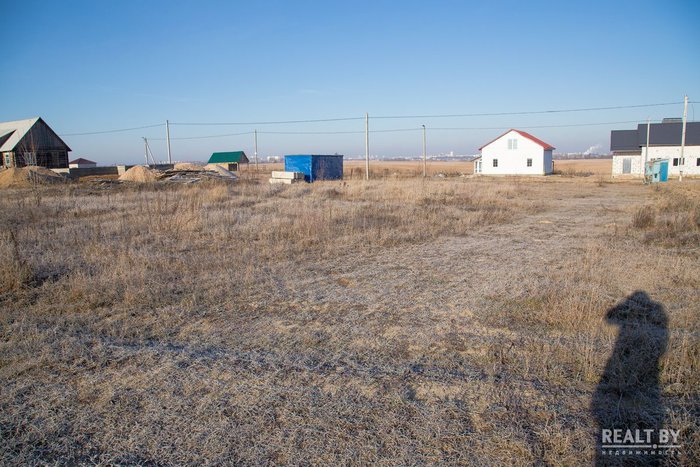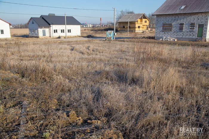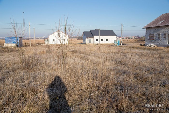 Участок выделен на окраине населенного пункта в квартале новой коттеджной застройки. Подъезд — плохая накатанная дорога. Из коммуникаций заявлены газ и электричество. Территория участка ровная, удобная для строительства. Из Минска к населенному пункту ведет асфальтированная дорога.
