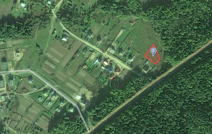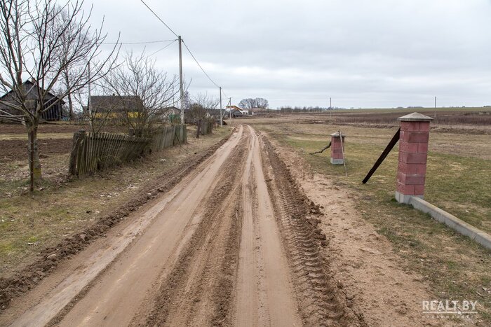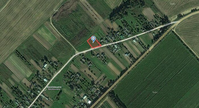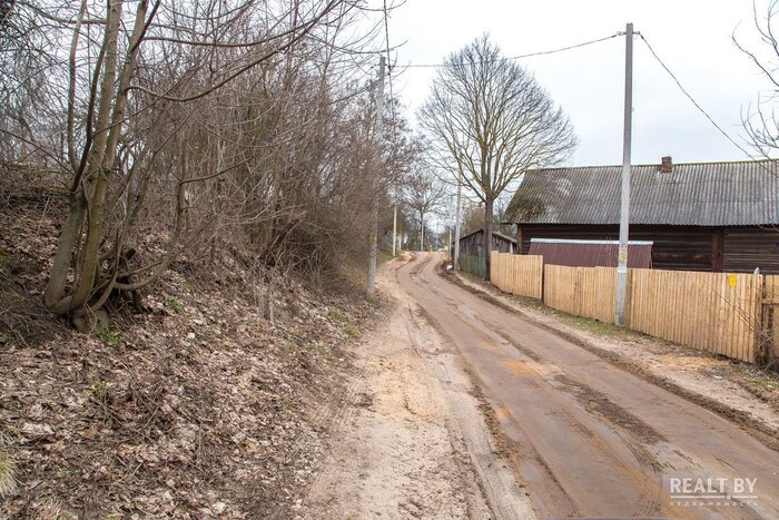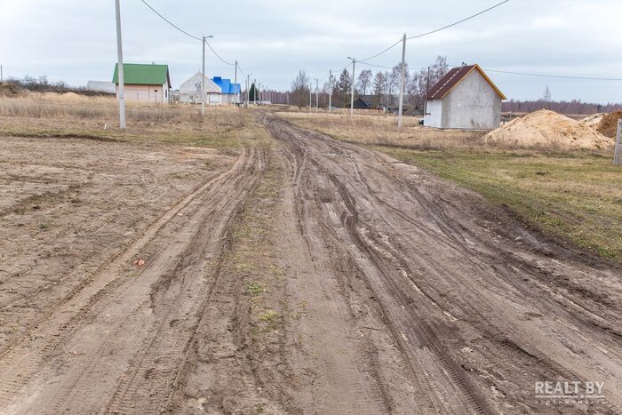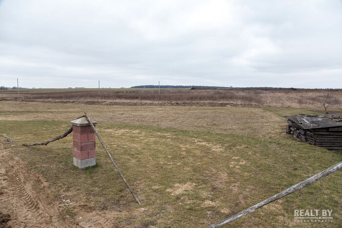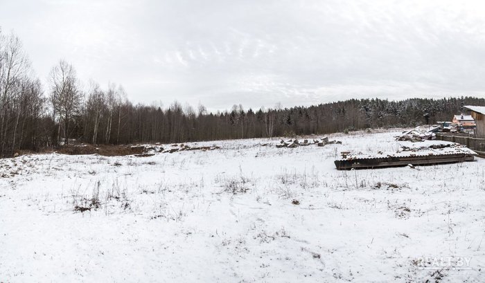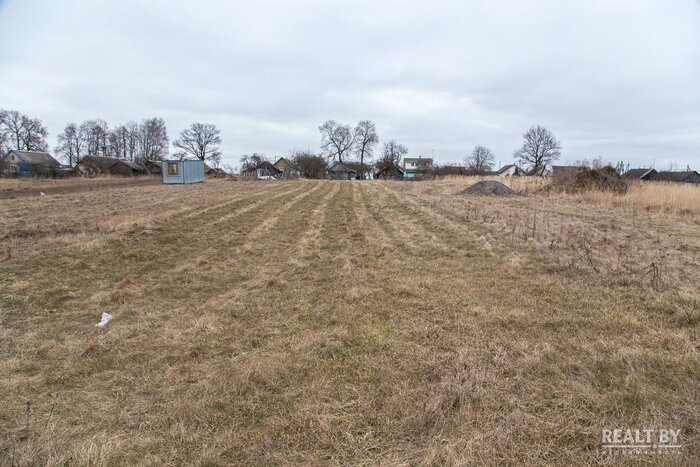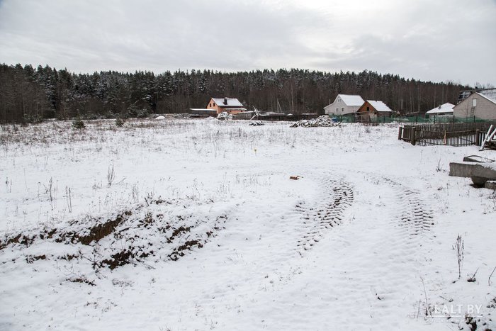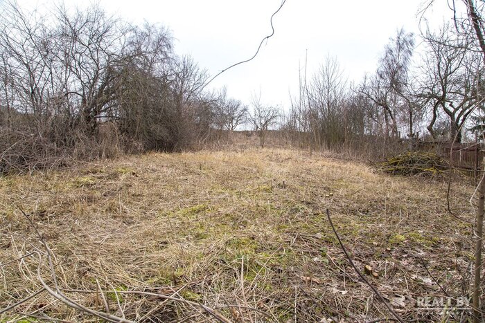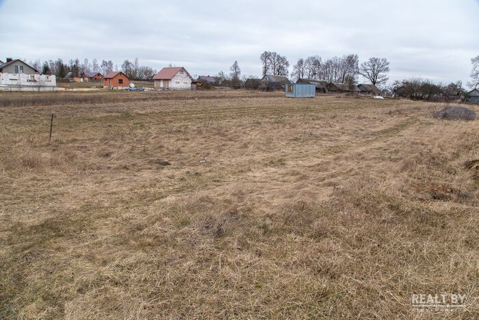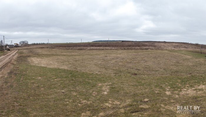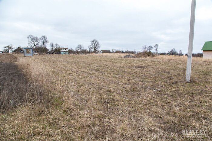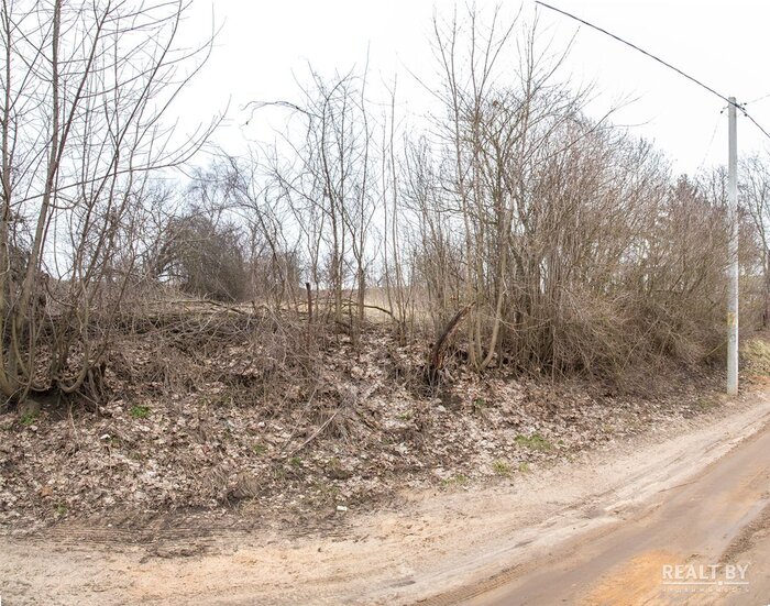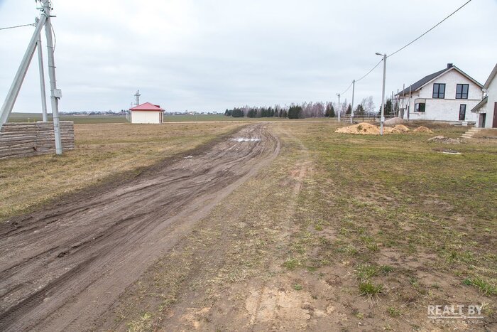 Участок крайний, выделен во второй линии от дороги. Находится возле леса, аккурат за жилыми домами. Подъезда к его территории нет. Земельный надел ровный, чуть под склоном. Коммуникаций поблизости не видно. Из Минска к населенному пункту ведет асфальтированная дорога.