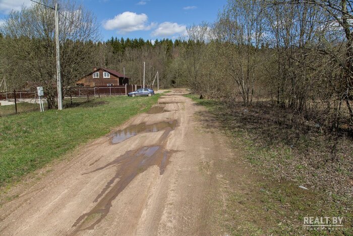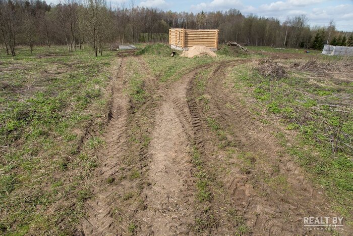 Участок размещается на въезде в поселок, в метрах 100 от дороги. Подъезда к его территории нет, к населенному пункту ведет сносная гравийка. Сосед строится — на участке возвышается сруб. Других строений поблизости нет. Площадка земельного надела ровная, вблизи леса. Из коммуникаций в деревне имеется только электричество.