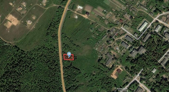 К деревне Новое Поле ведет асфальтированная дорога. Территория вдоль проезжей части представляет собой болотистую лесополосу, но в планах здесь появится новый жилой район: большинство участков вдоль дороги распродаются посредством аукциона. Территория земельного надела, выставленного на торги 13 мая, низкая, заросшая и сложная для освоения. Даже сейчас на площадке стоит вода. Коммуникаций вблизи участка нет.
