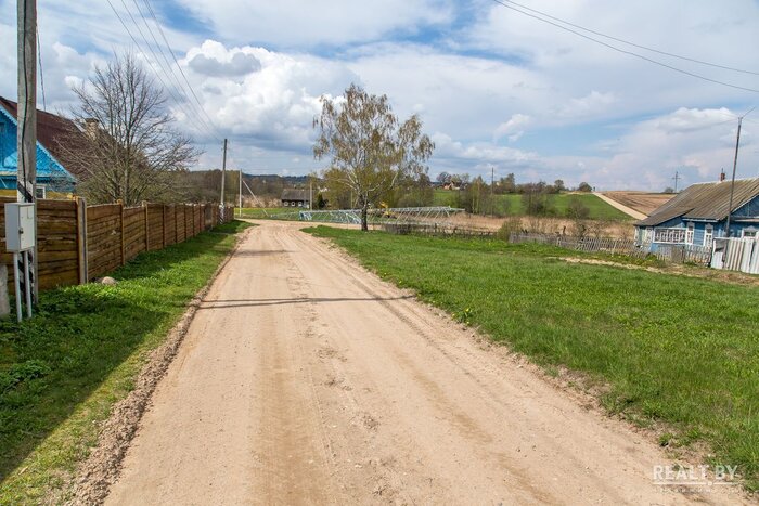 Второй участок, выставленный на торги в деревне Жуки, располагается вдоль главной улицы, среди жилых домов. Ландшафт местности холмистый, оттого вид с участка открывается довольно живописный. Подъезд — накатанная дорога, из коммуникаций — электричество.