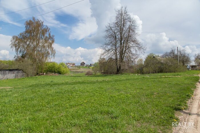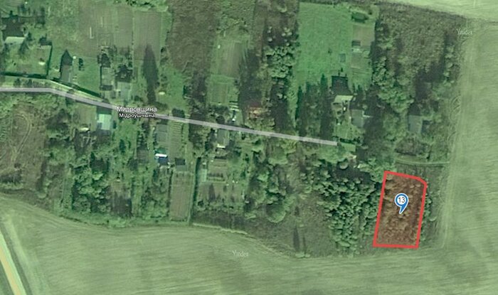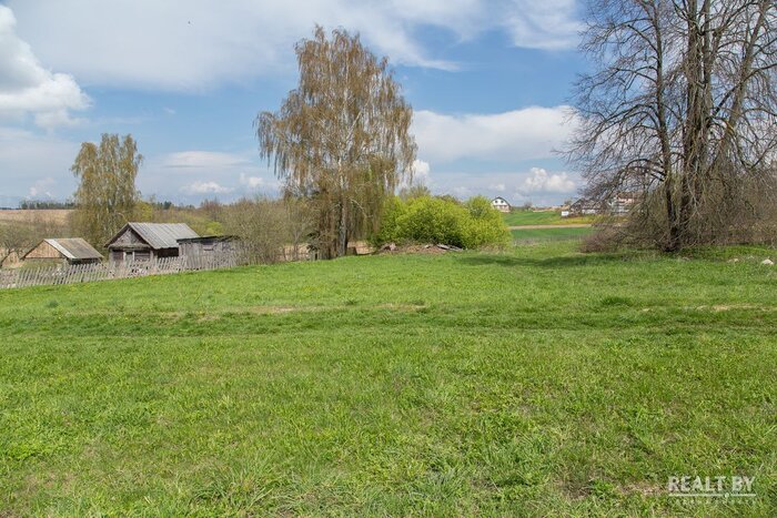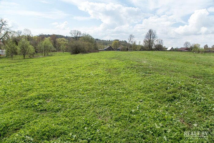 Участок угловой, располагается на самой окраине населенного пункта. С двух сторон земельный надел граничит с полем. Рядом имеются жилые дома. Местность довольно живописная, с участка открывается хороший вид на поля и леса. Подъезд — накатанная дорога. Территория участка чуть заросшая молодыми деревьями. Из коммуникаций заявлено электричество.
