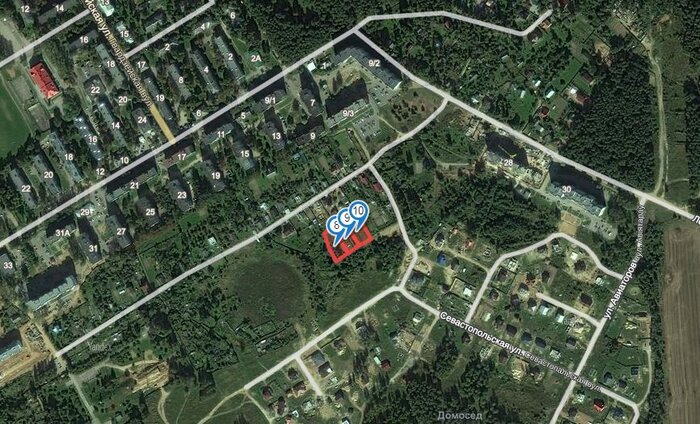 Участок маленький, треугольный, располагается на углу существующей застройки. С территории земельного надела открывается «живописный» вид на МКАД. Из-за приближенности к интенсивной магистрали на участке довольно шумно. О каких-либо прелестях загородной жизни в данном случае говорить не приходится. Однако приближенность к столице неоспорима. Все городская инфраструктура рядом, возле дома имеется супермаркет.