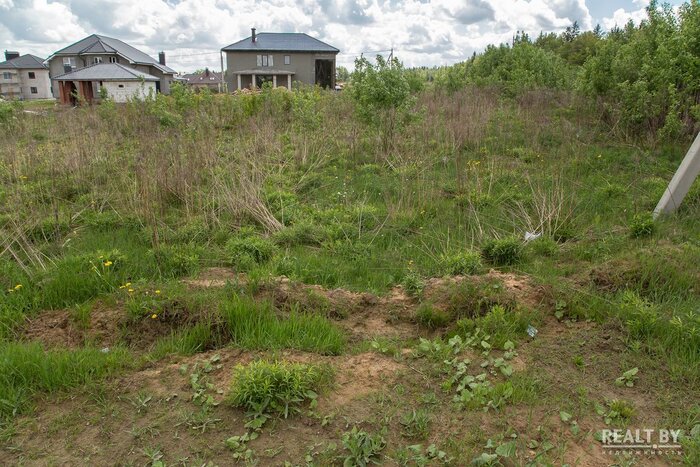 Участок выделен на окраине новой коттеджной застройки прямо возле леса. Все соседи активно строятся, подъезд — накатанная дорога. Территория участка ровная, удобная для строительства, чуть заросшая мелким кустарником. В целом место неплохое.