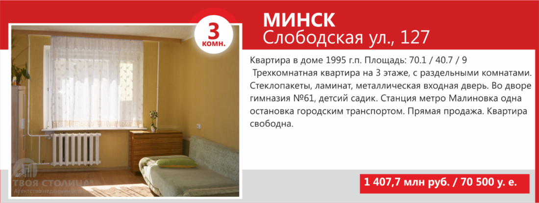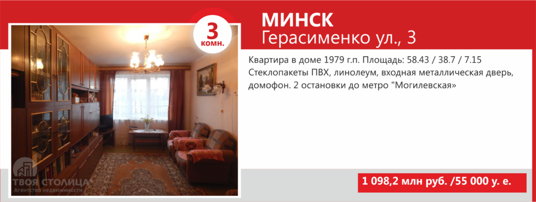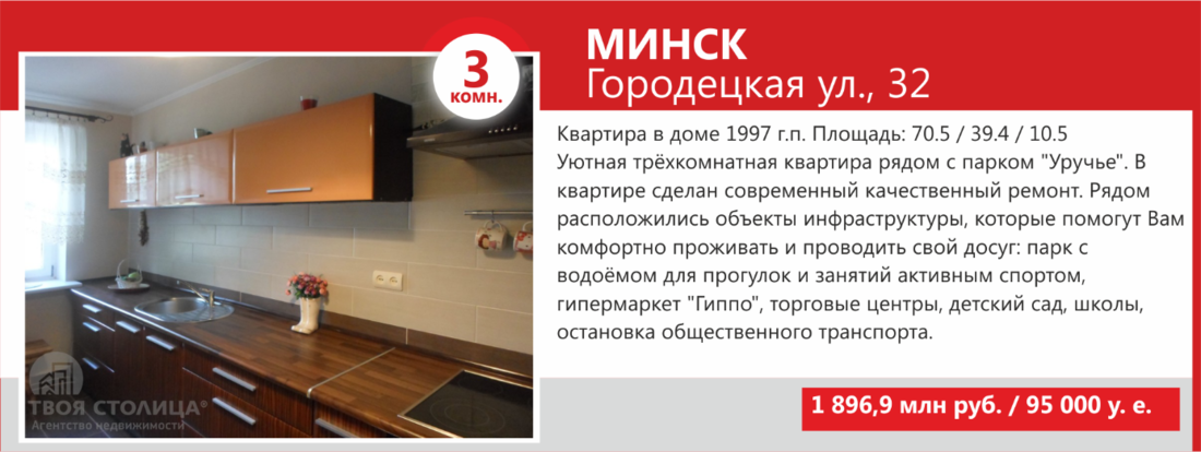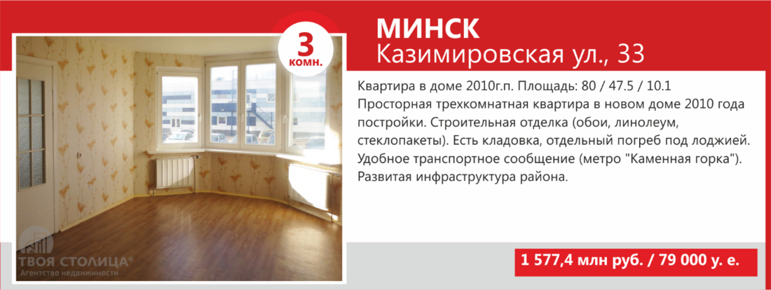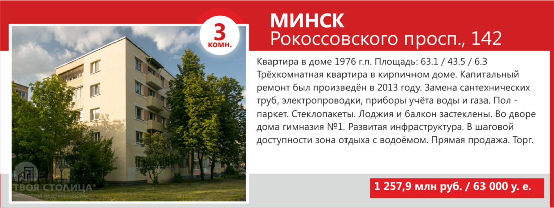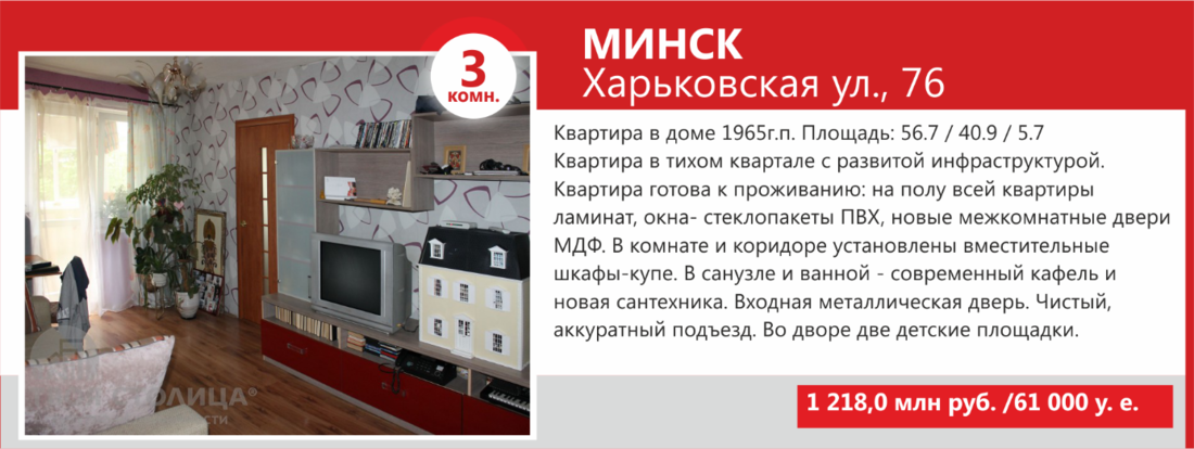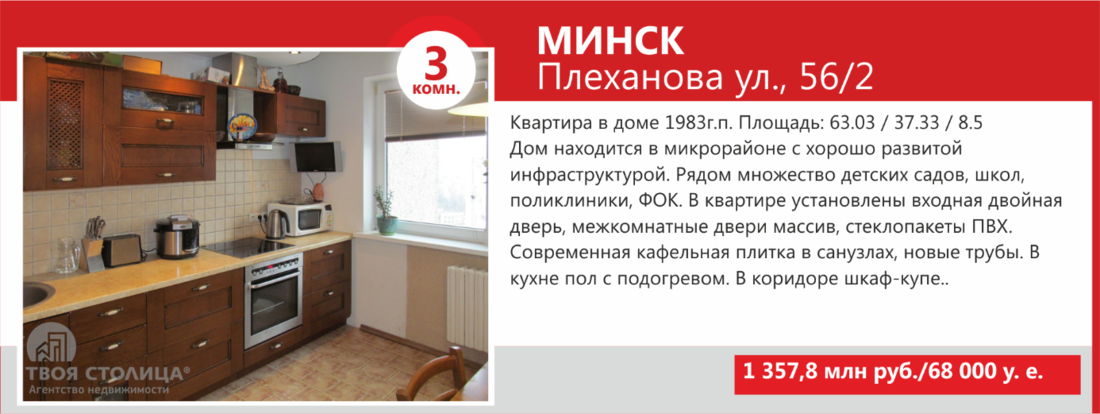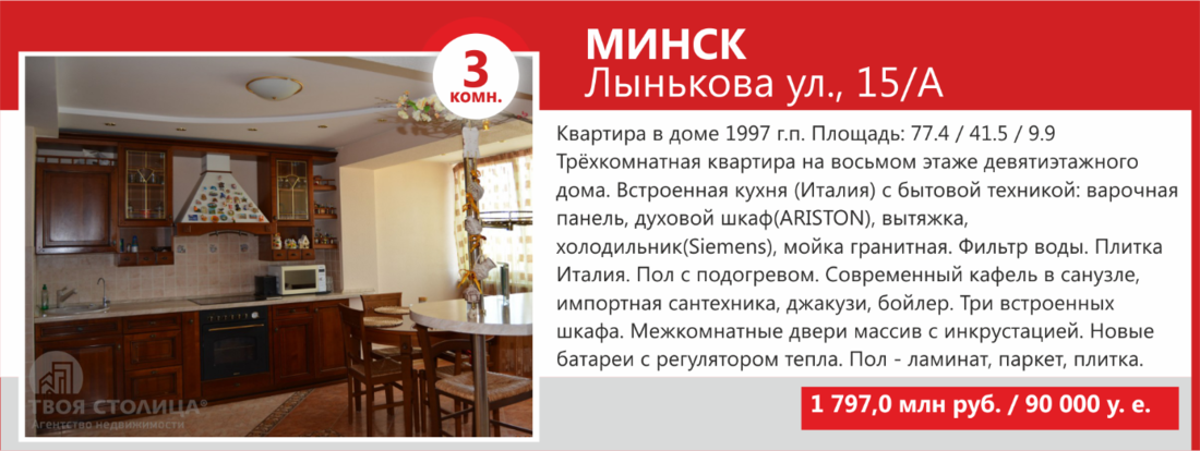 Предлагаем вашему вниманию привлекательные варианты трехкомнатных квартир в Минске: