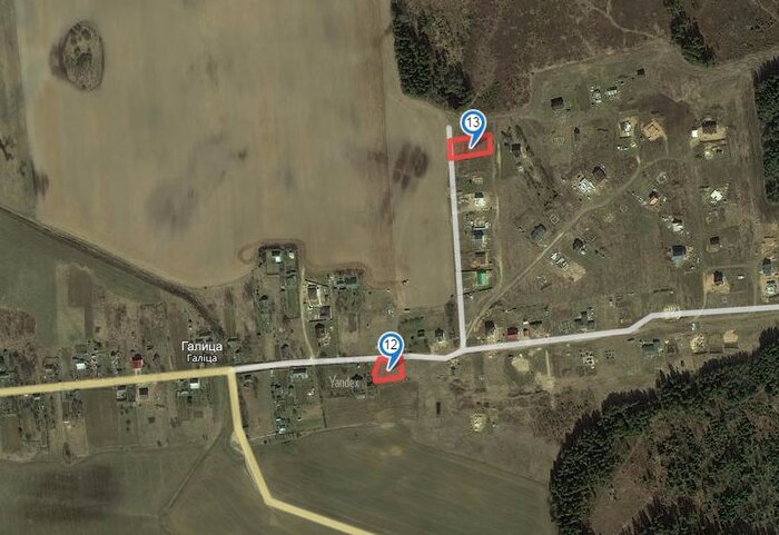 В деревне Галица на торги 15 июля выставлено два земельных участка. Участок № 8 (Лот № 12) располагается вдоль основной улицы. Подъезд — гравийка, из коммуникаций заявлены электричество и водопровод. Справа от участка располагается жилой дом, слева и сзади — пустырь. В данном квартале выделено много новых участков, возможно, вскоре здесь начнется активное строительство. Территория вакантного земельного надела ровная и удобная для строительства.