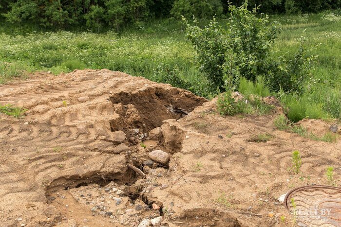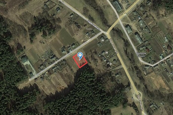 Участок выделен у лесополосы, аккурат за жилыми домами. Площадка низкая, холмистая, скорее всего, склонна к затоплению. Из коммуникаций заявлены электричество и водопровод. Ближайший сосед строится, к своему участку провел дорогу, подъезд — гравийка.