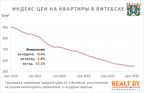 За неделю с 20 по 27 июня 2016 года информационно-аналитическим центром Realt.by были отмечены следующие изменения на вторичном рынке жилья города Витебска: