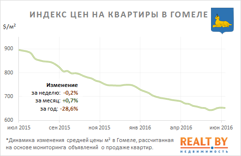 За неделю с 20 по 27 июня 2016 года информационно-аналитическим центром Realt.by были отмечены следующие изменения на вторичном рынке жилья города Гомеля: