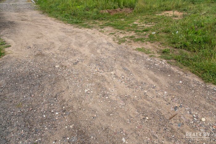 Улица асфальтирована, но подъезда непосредственно к территории участка пока нет, а вот из коммуникаций имеется все необходимое: электричество, газ и водопровод.