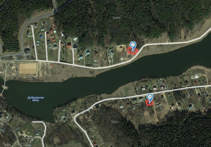 Еще один лот выделен на противоположном берегу Дубровского водохранилища — в деревне Раубичи. Участок размещается в квартале частной застройки, рядом преимущественно жилые дома, ближайший сосед строится.