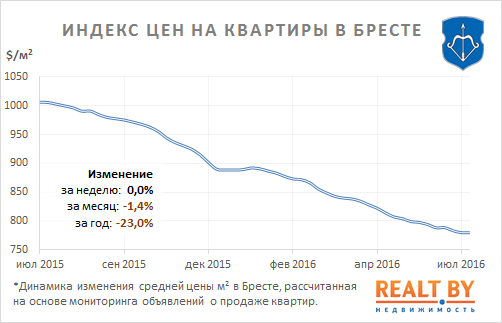 За неделю с 4 по 11 июля 2016 года информационно-аналитическим центром Realt.by были отмечены следующие изменения на вторичном рынке жилья города Бреста:
