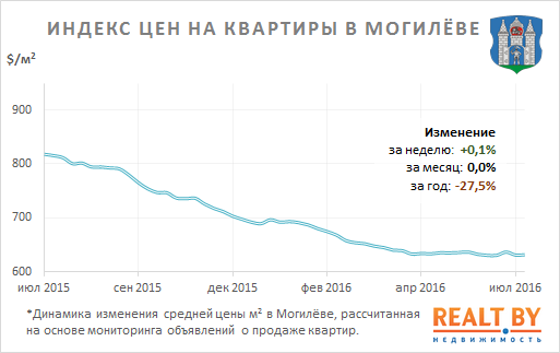 За неделю с 4 по 11 июля 2016 года информационно-аналитическим центром Realt.by были отмечены следующие изменения на вторичном рынке жилья города Могилева:
