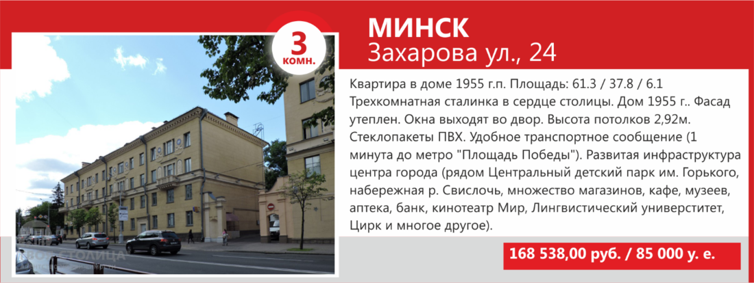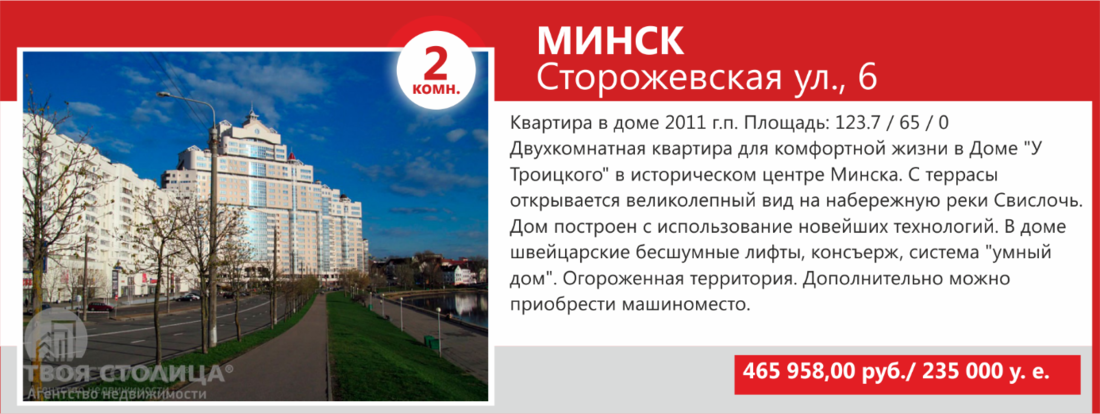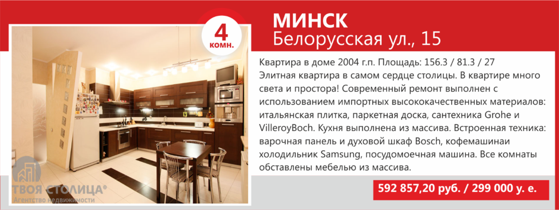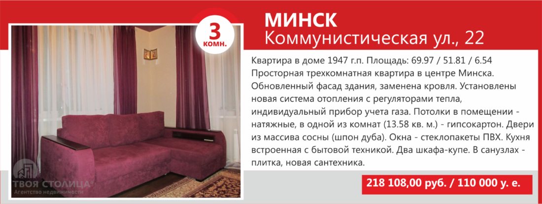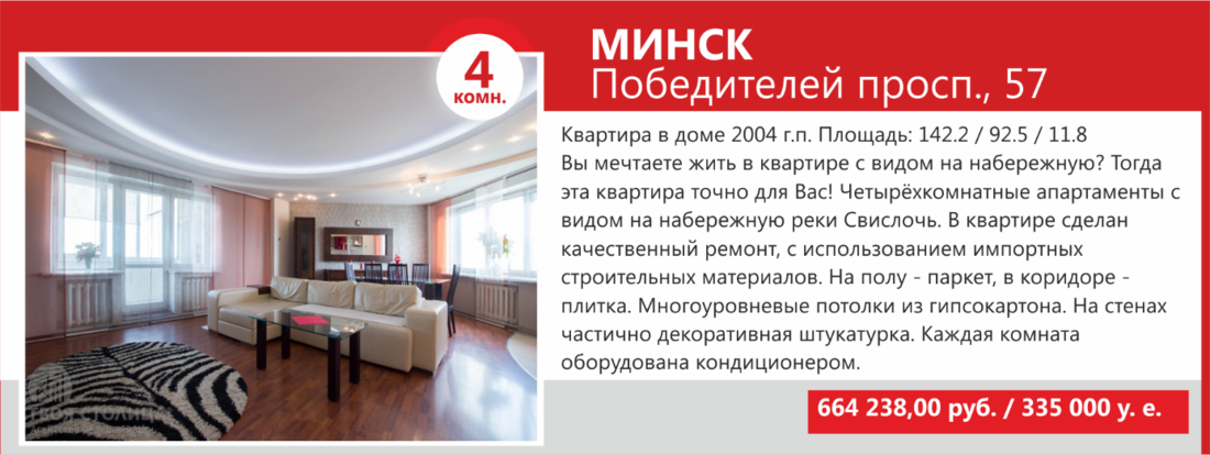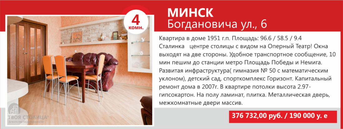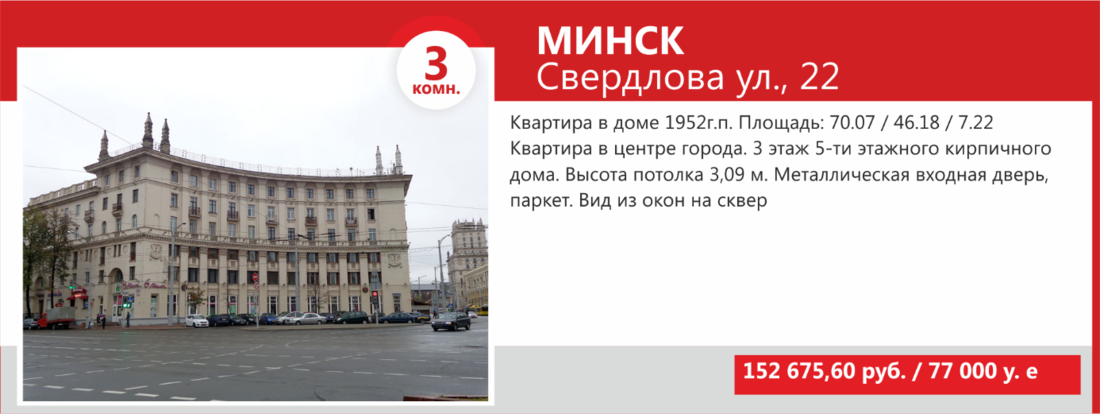 Вашему вниманию ТОП-10 отличных предложений квартир, расположенных в центре белорусской столицы.