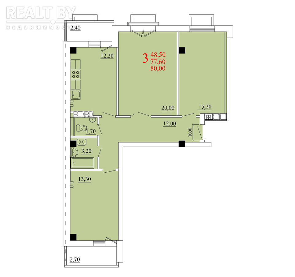 3-комнатные от 84 м2 — $ 58,8 тыс.