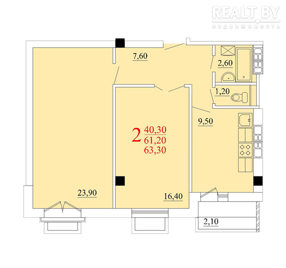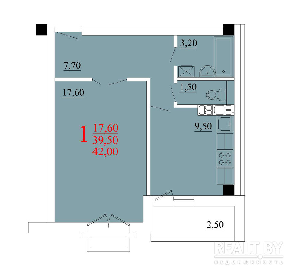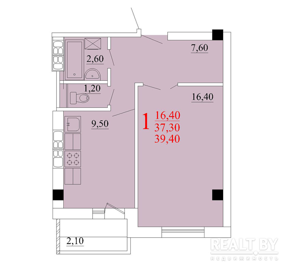 1-комнатные от 39 м2 — $ 31,2 тыс.