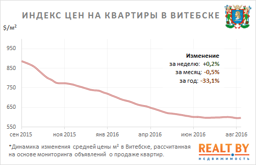 За неделю с 22 по 29 августа информационно-аналитическим центром Realt.by были отмечены следующие изменения на первичном и вторичном рынках недвижимости города Витебска: