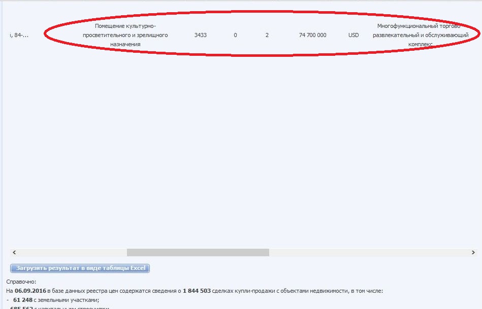 Согласно данным Национального кадастрового агентства, кинотеатр был продан за $ 74,7 млн. Понятно, что столько кинотеатр стоить не может. Ошибка регистраторов исключается, поскольку кинотеатр не потянет и на $ 7,4 млн долларов и на 74,7 млн рублей. Скорее всего, цена, зафиксированная в НКА, реальная. Другой вопрос, что за ней скрывается.