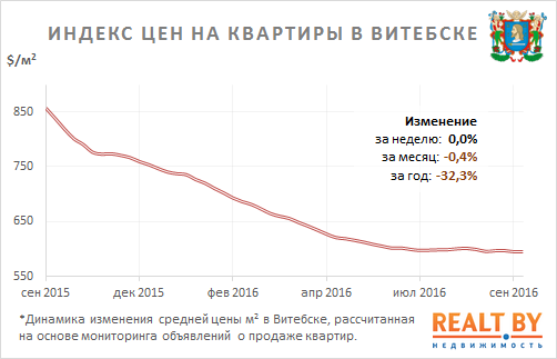 За неделю с 12 по 19 сентября информационно-аналитическим центром Realt.by были отмечены следующие изменения на первичном и вторичном рынках недвижимости города Витебска: