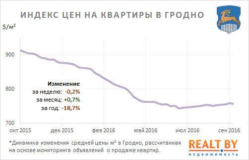 За неделю с 26 сентября по 3 октября информационно-аналитическим центром Realt.by были отмечены следующие изменения на первичном и вторичном рынках недвижимости города Гродно: