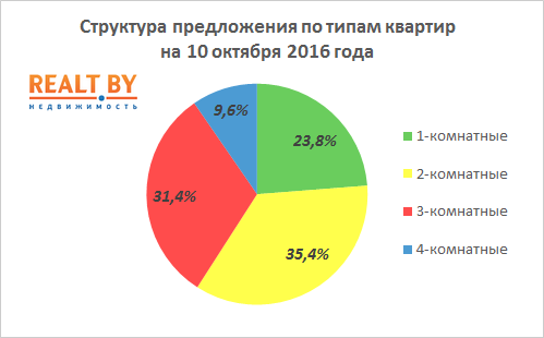 Структура предложения по типам квартир выглядит на 10 октября следующим образом: