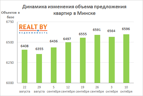 За неделю, с 3 по 10 октября 2016 года, информационно-аналитическим центром Realt.by были отмечены следующие изменения на первичном и вторичном рынках недвижимости города Минска: