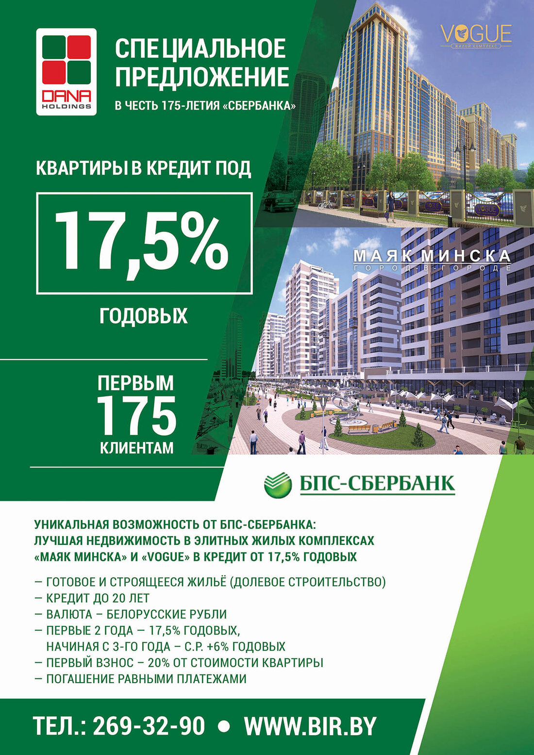 Внимание! Специальное предложение от Dana Holdings к 175-летию «БПС-Сбербанк» — кредит на квартиры от 17,5% для первых 175 клиентов