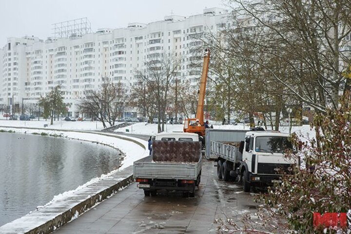Возле Острова слез сбивают плитку: начался ремонт набережной Свислочи