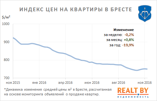 За неделю с 7 по 14 ноября информационно-аналитическим центром Realt.by были отмечены следующие изменения на первичном и вторичном рынках недвижимости города Бреста:
