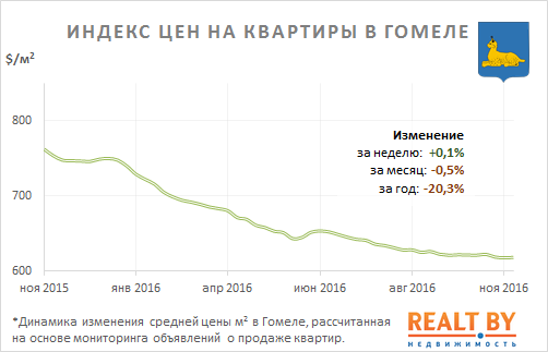 За неделю с 7 по 14 ноября информационно-аналитическим центром Realt.by были отмечены следующие изменения на первичном и вторичном рынках недвижимости города Гомеля: