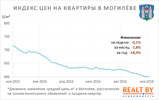 За неделю с 7 по 14 ноября информационно-аналитическим центром Realt.by были отмечены следующие изменения на первичном и вторичном рынках недвижимости города Могилёва: