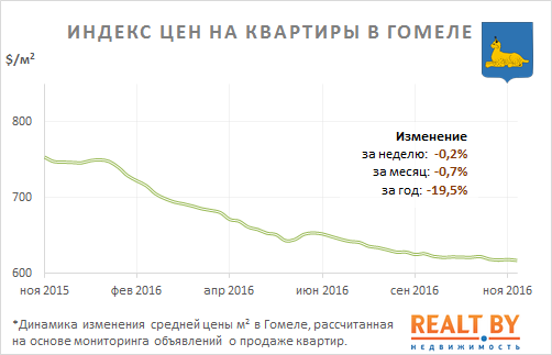 За неделю с 14 по 21 ноября информационно-аналитическим центром Realt.by были отмечены следующие изменения на первичном и вторичном рынках недвижимости города Гомеля:
