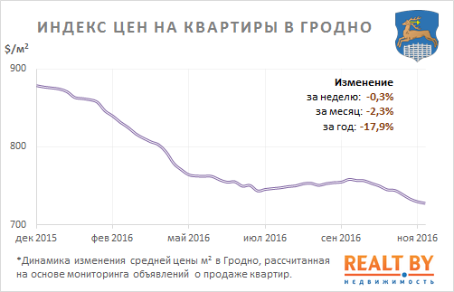 За неделю с 28 ноября по 5 декабря информационно-аналитическим центром Realt.by были отмечены следующие изменения на первичном и вторичном рынках недвижимости города Гродно: