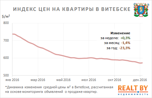 За неделю с 19 по 26 декабря информационно-аналитическим центром Realt.by были отмечены следующие изменения на первичном и вторичном рынках недвижимости города Витебска:
