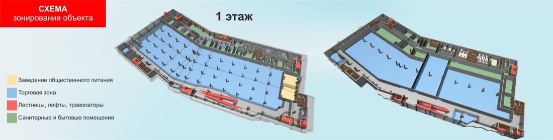 Проект предусматривает размещение на двух уровнях. На первом — большой продовольственный супермаркет, объект общественного питания, торговая аллея. На втором уровне — 4700 квадратных метров, предназначенных для размещения торговых объектов. Также проект предусматривает возможность организации гостевой парковки на 130 машиномест.