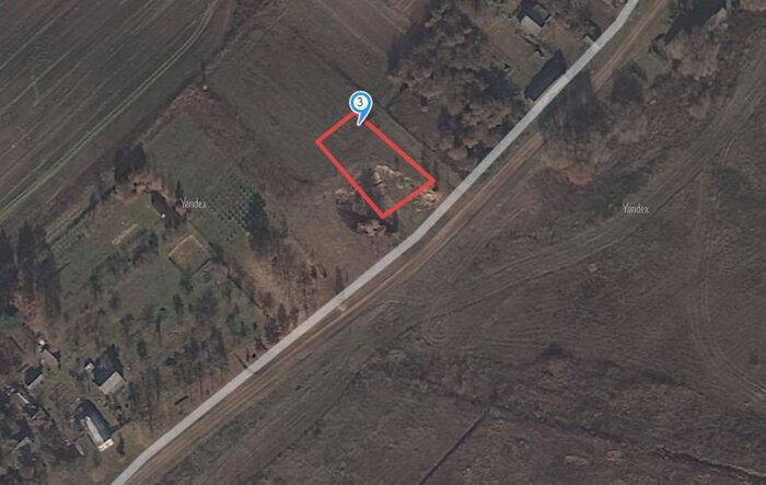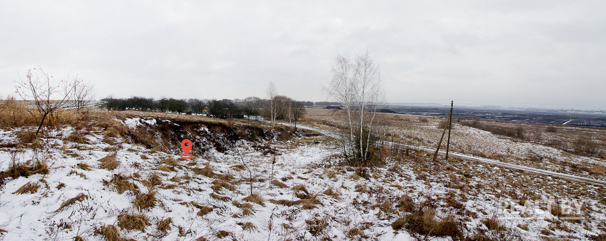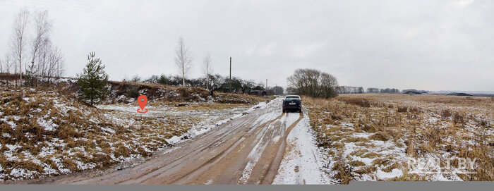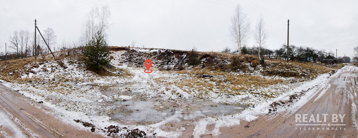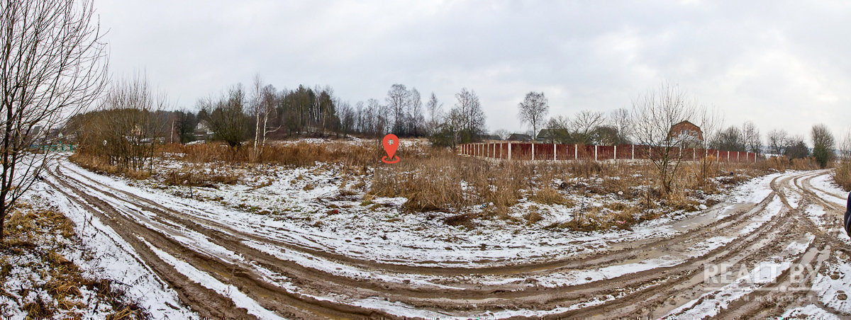 Участок ровный, выделен на пустыре. Справа — жилой дом, земельный надел слева также разыгрывается посредством аукциона. Площадка ровная, удобная для строительства. За территорией участка склон и лесополоса, напротив местная мусорка, за ней поле. Подъезд — плохая накатанная дорога. Из коммуникаций заявлен только газ.