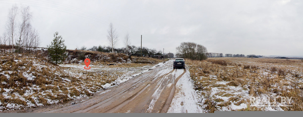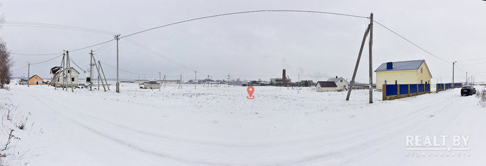 Участок № 2 выделен на въезде в поселок, недалеко от магазина «Купалiнка» и во второй линии от основной дороги. Соседние земельные наделы пока пустуют, но они также разыгрываются через аукцион. Ранее эти территории использовались в сельхозцелях — площадки вспаханы и освоены. Почти к самим участкам ведет асфальтированная дорога, в метрах пятистах проходит трасса к национальному аэропорту (М2). Территория участка № 2 ровная, удобная для возведения дома, чуть под склоном. Жилой сектор находится рядом, но отгорожен забором. Из коммуникаций здесь имеются электричество и газ. Рядом небольшое сельхозстроение.