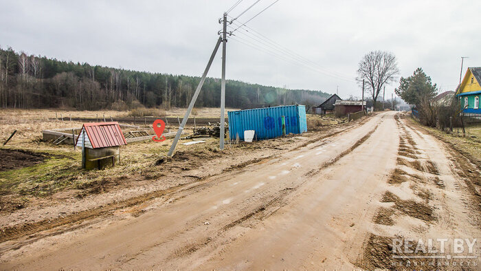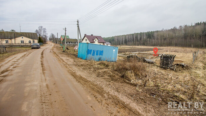 Участок выделен на склоне, рядом жилые дома, напротив — пустырь и лесополоса. Площадка низкая, у дороги, частично затоплена. Подъезд — гравийка, из коммуникаций только имеется электричество.