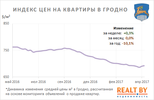 За неделю с 24 апреля по 1 мая информационно-аналитическим центром Realt.by были отмечены следующие изменения на первичном и вторичном рынках недвижимости города Гродно: