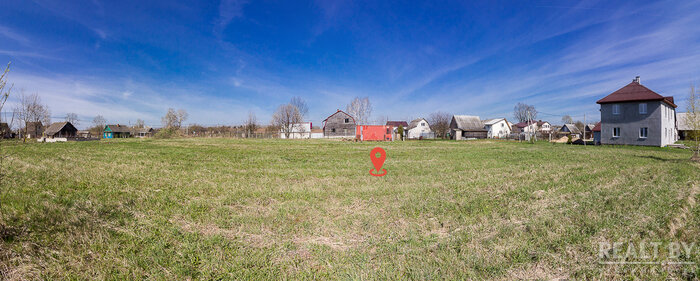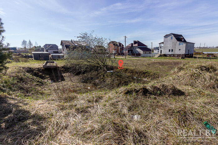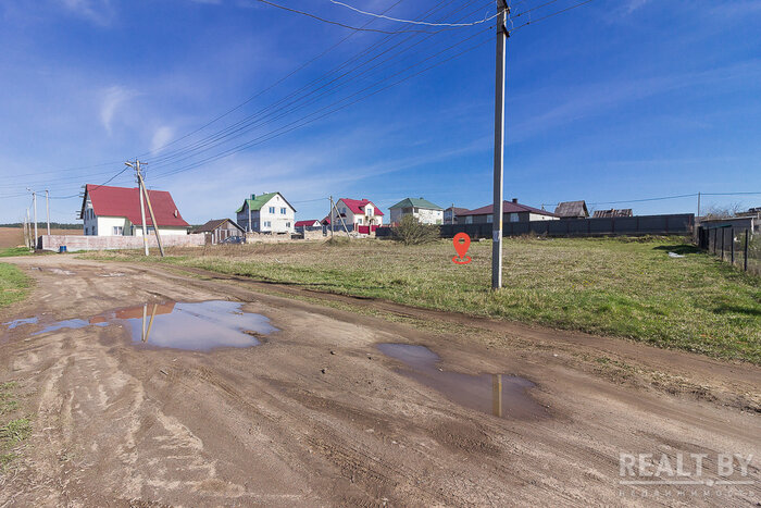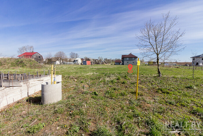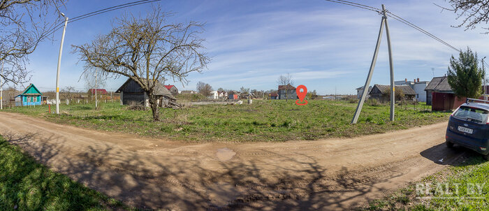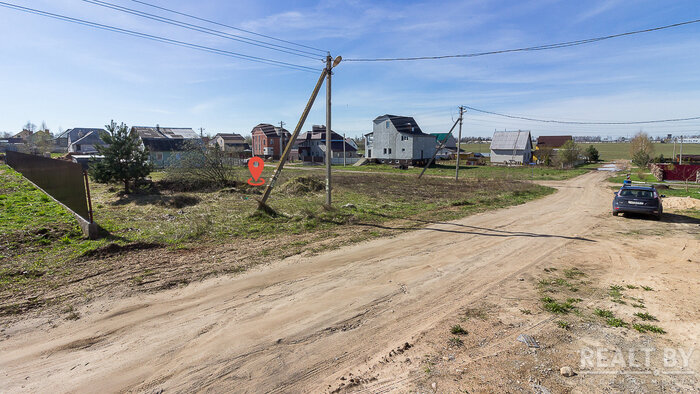 Участок угловой, ровный, удобный для возведения дома. На площадке имеется заготовка под пруд. Подъезд — гравийка, из коммуникаций есть газ, электричество и вода. Некоторые соседи строятся, вокруг много жилых домов. В целом, место неплохое.