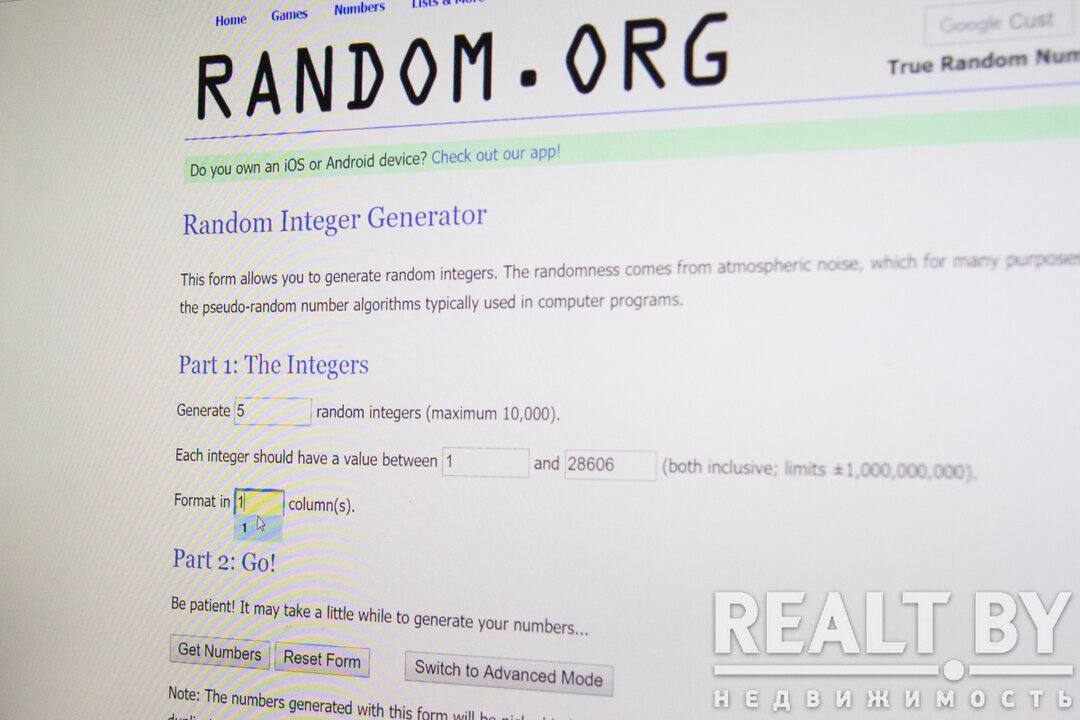 Сегодня в присутствии представителя Sony Centre Екатерины Вашковой начальник отдела программирования портала Realt.by Дмитрий Мартыненко применил программу-генератор случайных чисел. В эту программу Дмитрий внес базу всех телефонных номеров, принимавших участие в голосовании, и программа выбрала пять номеров-финалистов. Далее, пять счастливчиков будут приглашены в новый салон Sony Centre в ТЦ «Галерея Минск», где организаторы на втором этапе розыгрыша вытянут один конверт с номером-победителем.