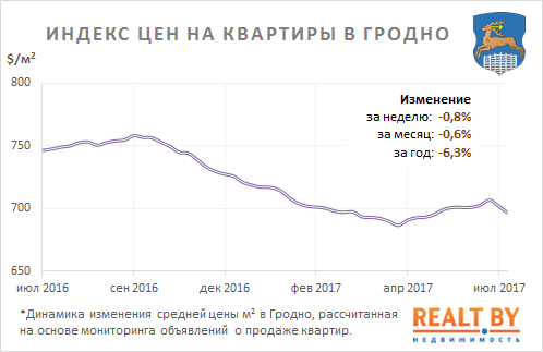 За неделю с 3 по 10 июля информационно-аналитическим центром Realt.by были отмечены следующие изменения на первичном и вторичном рынках недвижимости города Гродно: