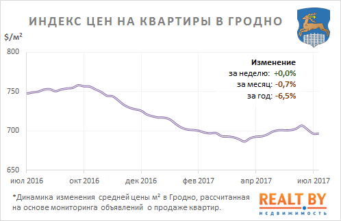 За неделю с 10 по 17 июля информационно-аналитическим центром Realt.by были отмечены следующие изменения на первичном и вторичном рынках недвижимости города Гродно: