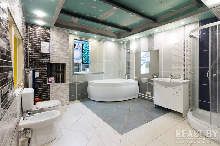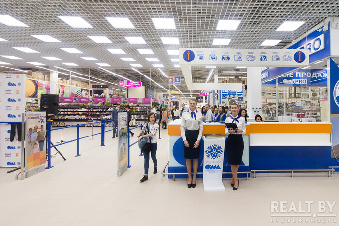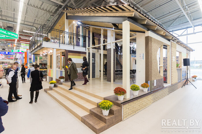 Однако «гвоздь программы» — коттедж, построенный в натуральную величину прямо в торговом зале гипермаркета. Коттедж двухуровневый с гостиной, кухней, 4 спальнями, 3 санузлами, 2 гардеробными, террасой и кладовой. Это полноценный дом, где можно оценить, потрогать и сравнить различные материалы и технологии, применяемые в строительстве и отделке.